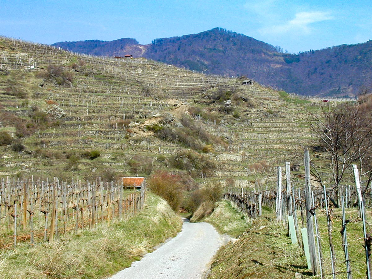 | Blick vom Ried Singerriedl auf Spitz und den Tausendeimerberg. |