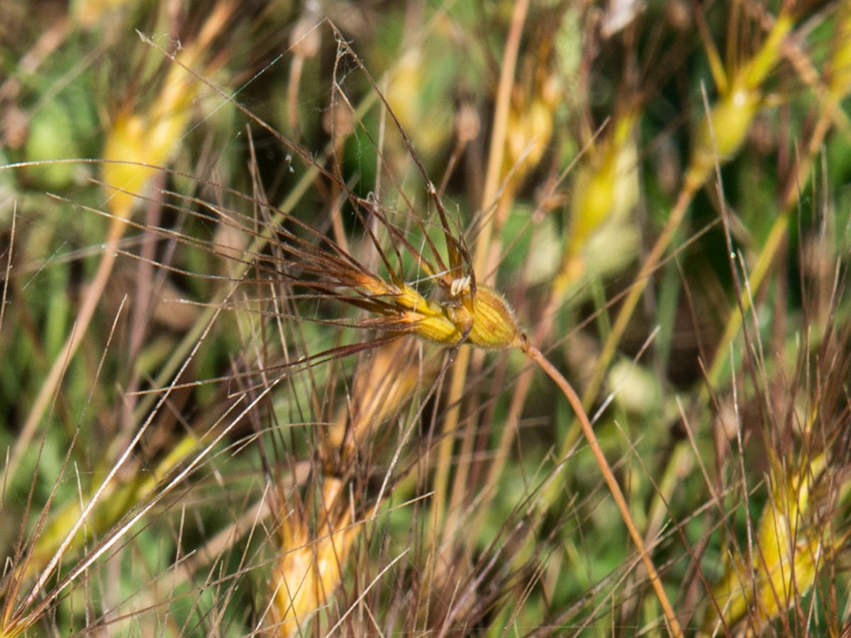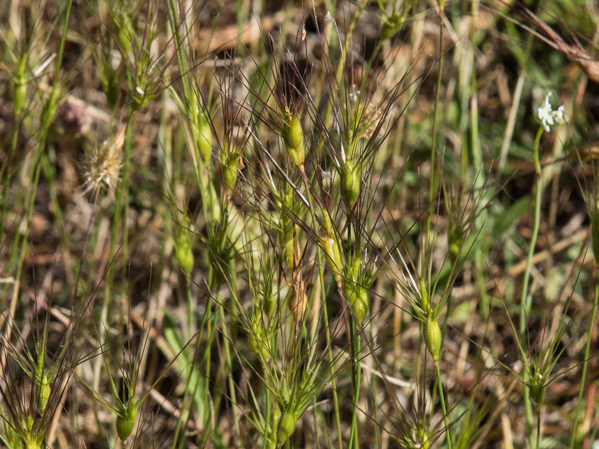 | Synonym: Aegilops triaristata. Therophyt, planar-um. Die behaarten, aber auch kahlen Hüllspelzen tragen 2—3 lange Grannen. Oberhalb der 2 fertilen Ährchen sind noch bis 3 sterile Ährchen vorhanden. Die Grannen der Deckspelzen sind kürzer als jene der Hüllspelzen. Die Art kommt auf Istrien vor allem im Süden häufig, sonst zerstreut vor (Lit). Weltweite Verbreitung und Gefährdung siehe Royal Botanic Gardens KEW. Aufnahme: 05.06.2022 Uvala Cisterna |