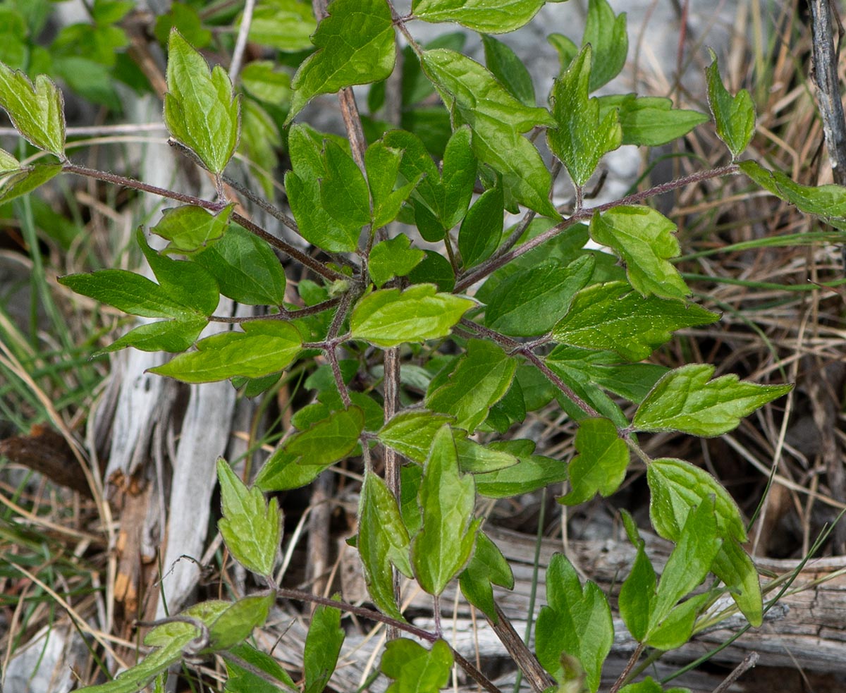 | Häufig im Süden Istriens: Bei Clematis vitalba var. odontophylla sind die Blättchen tief eingeschnitten bis lappig (Lit). Aufnahme: 12.04.2017 Skitača |