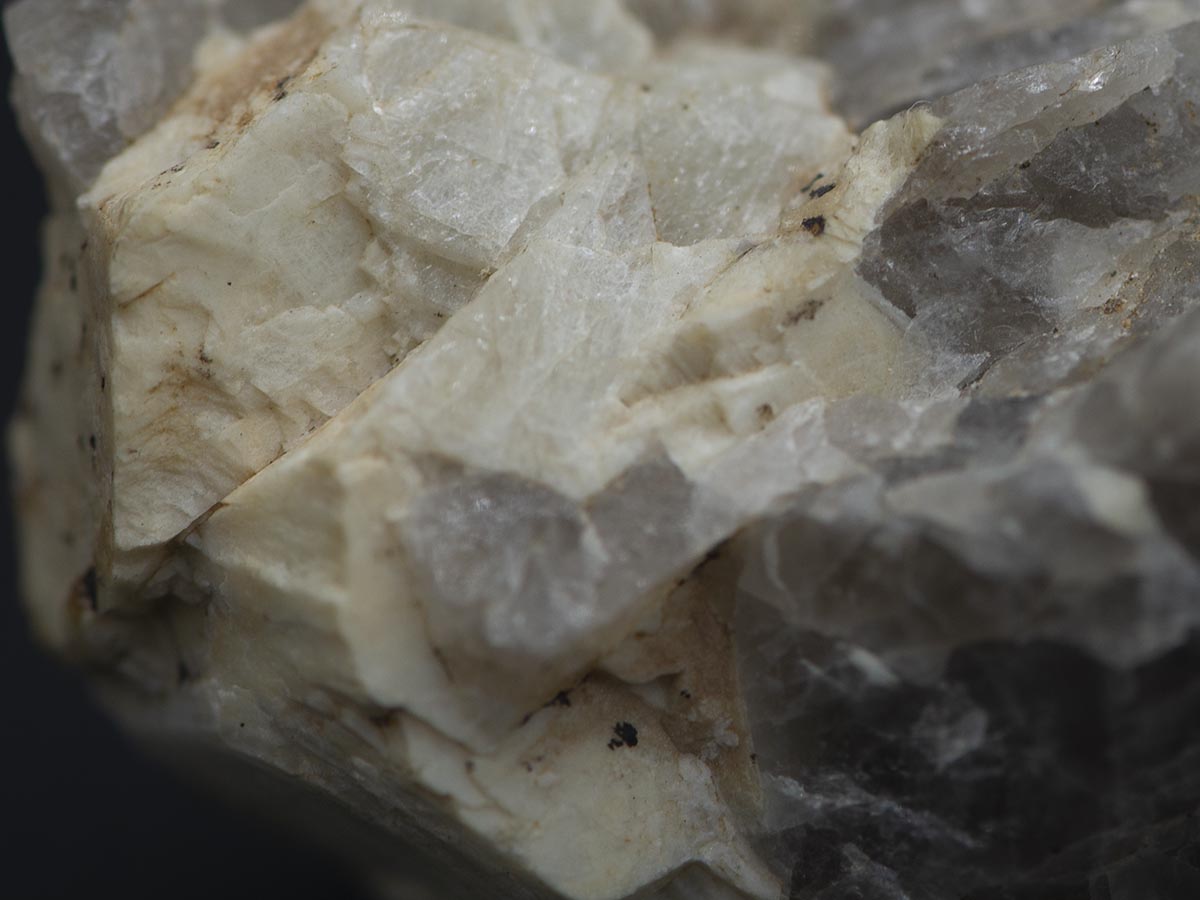 Hypoabyssales magmatisches Gestein. Quarz und Feldspat im Eutektikum gebildet = Schriftgranit; Der Fundort: Pegmatit-Steinbruch bei Königsalm, Niederösterreich. Heute verwachsen und unzugänglich.