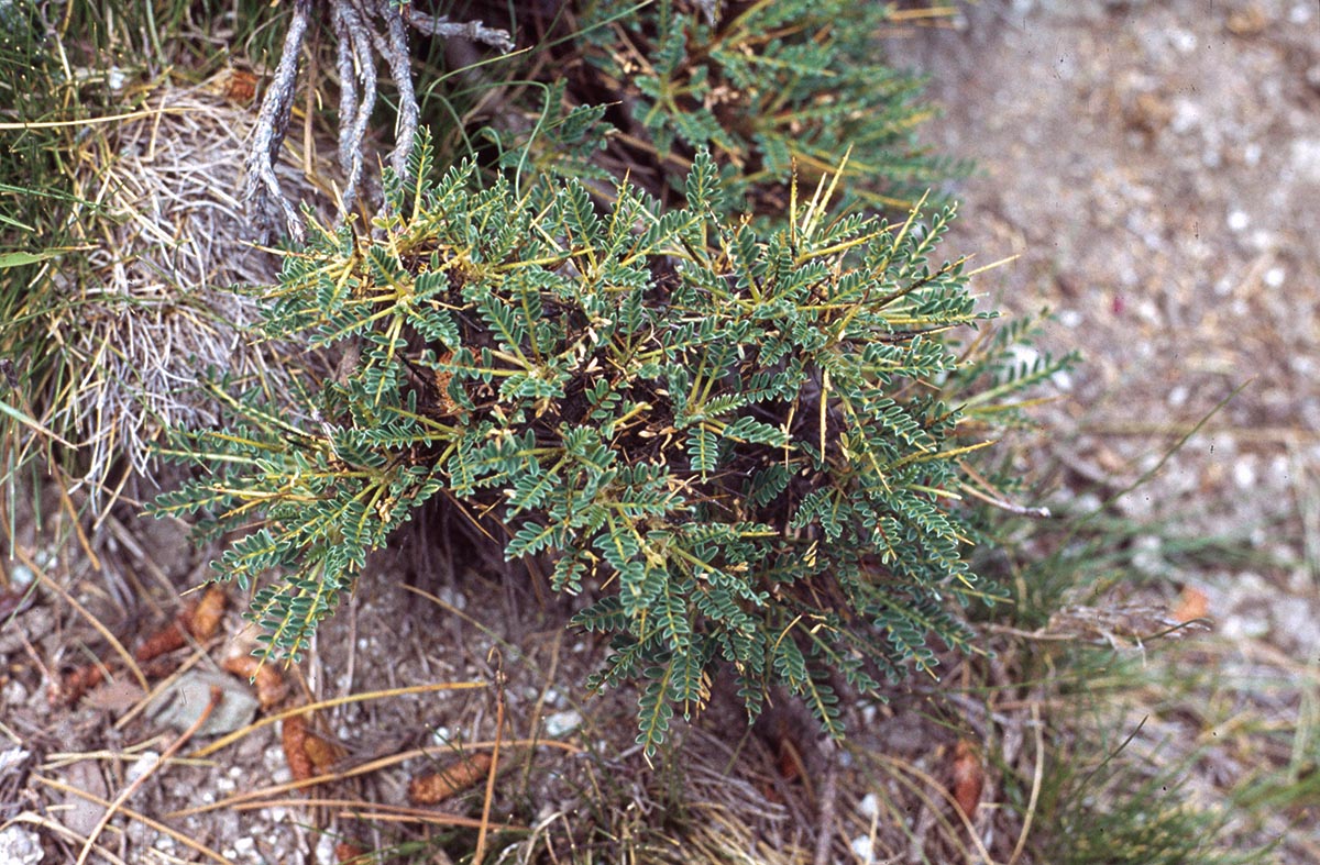 | Der Greuteri-Tragant (Astragalus greuteri) kommt hier überall vor und ist verantwortlich dafür, dass man sich oberhalb der Bergschuhränder die Waden beim Wandern völlig zerkratzt. |