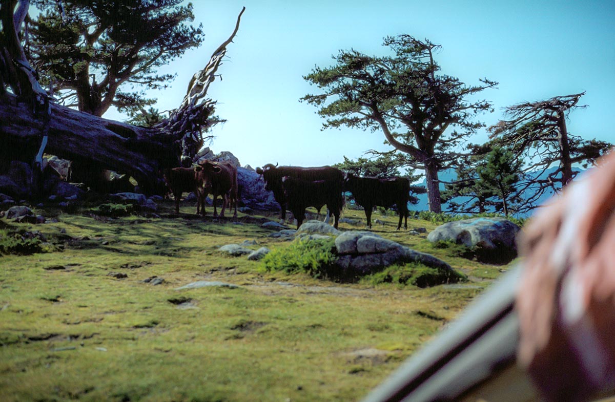 | Um 09:00 Uhr wurden wir von ein paar netten, neugierigen Rindern geweckt. Das störte uns nicht. Dann aber zogen Horden von Wanderern an uns vorbei, so viele, dass wir dann spontan beschlossen, den GR 20 nicht mehr weiter zu gehen, sondern über den nahe gelegenen Rücken zur Pta di Zorpi und über die weiteren Gipfel zum Mte Renoso zu gehen. Das kann doch nicht so schwierig sein, dachten wir und wollten damit aus dem Herdentrieb ausbrechen. Das war ein wenig überzogen, wenn ich an die Massen denke, die heutzutage den GR 20 bewandern. |