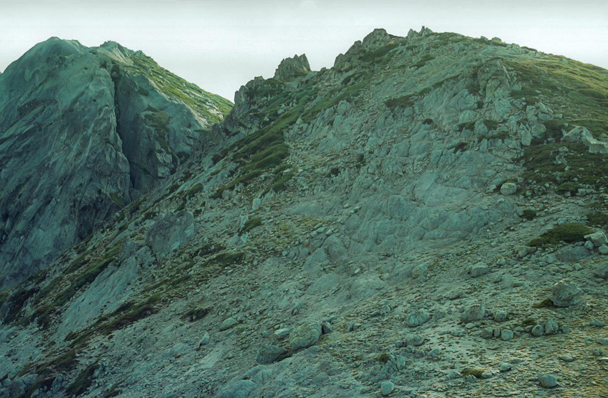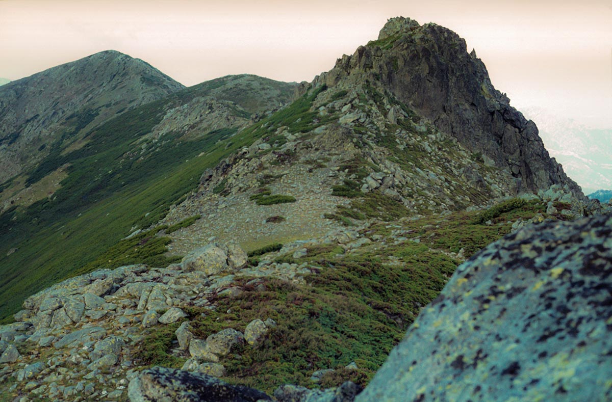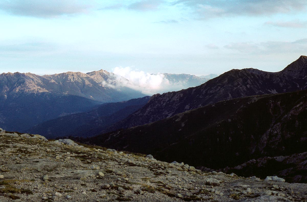 | Links der Mte Renoso, in der Bildmitte Pta Bacinello. Hinter dem Felsen rechts liegt die Pta dell´Oriente. |