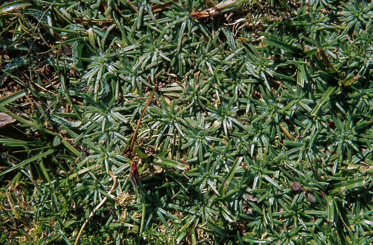 | Der Pfriemenblättrige Wegerich (Plantago subulata ssp. insularis) bedeckt hier breite Flächen. |