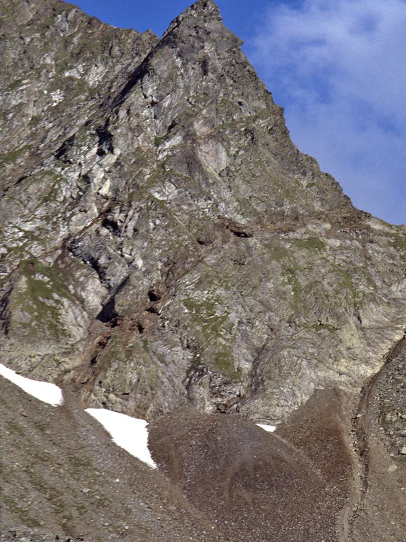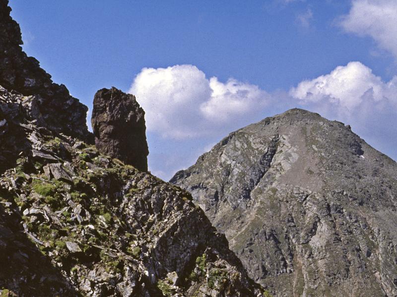 | Blick von der Scharte zum Knappenkar auf die Elgelkarspitze. |