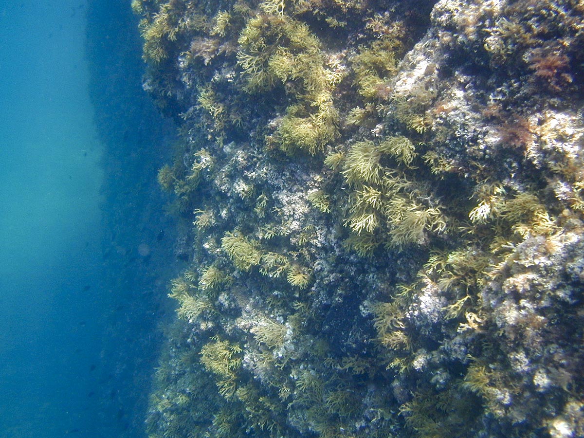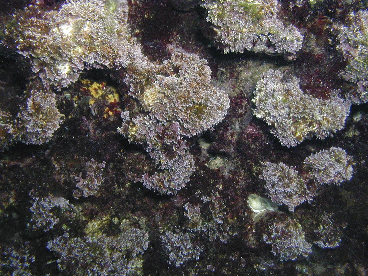 Im Schattenbereich vor dem Höhleneingang dominieren nun die Rotalgen (Corallina). |