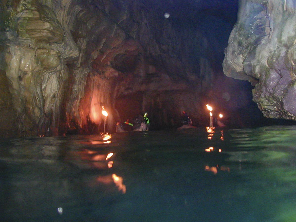 Mit Fackel oder besser starker Taschenlampe kann man tiefer in die Grotte eindringen. |