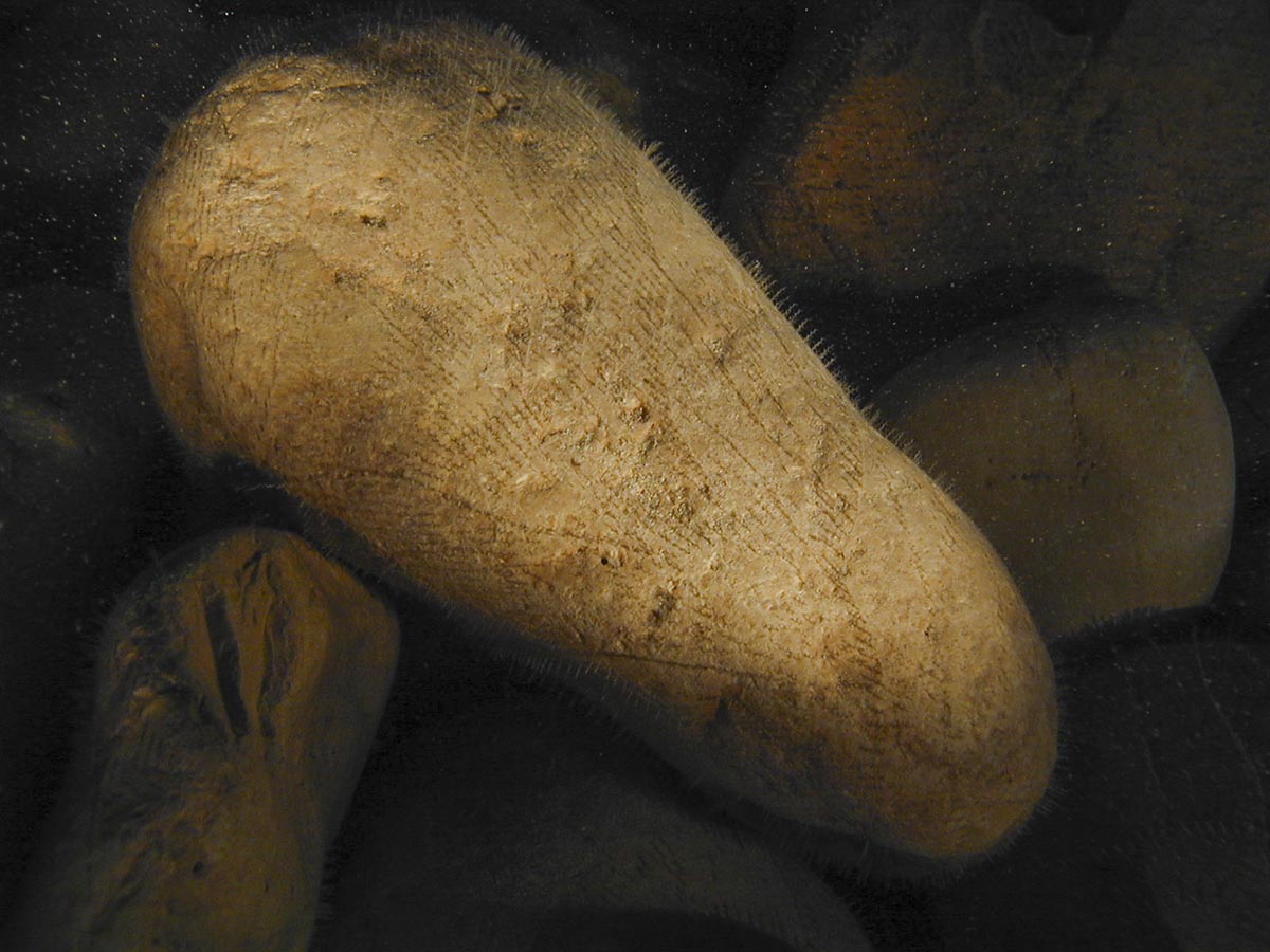 Ganz hinten am Schotterstrand in der Grotte ist die Musterung auf den Steinen interessant: Es handelt sich um Hydroidpolypen, die Reihen bilden. |